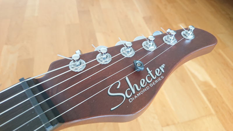 Another thing which annoyed me and I don't know if it's Schecter's or Thomann's fault, but the strings which came with it were rusty. Ironically, there was an Ernie Ball promo tag bundled with the guitar, saying how it's strung with excellent strings. I assume someone tested the guitar, the strings rusted and no one bothered at the retailer to check it. I hope it wasn't a floor model. The tag wasn't even attached to the neck, which makes me think it was used before. I also hated the potentiometers. The tone one has a deadzone and the knobs are horribly shaped. Using the push-pull system is awkward and if your fingers are at least somewhat sweaty, impossible. These are parts which cost a few dollars, so how come they're in this state in a 1000€ guitar?
