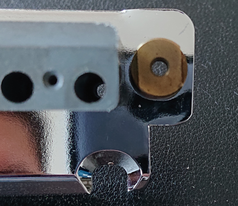 I've reported the strange behaviour to the retailer where I bought the guitar, Thomann. They told me that everything was okay with the vibrato system, but offered to return the money. Since the only other viable guitar was the Yamaha Pacifica Standard Plus, which also had comments about its shitty quality control online, I decided to take the guitar back. After all they said that it worked properly. After receiving the guitar, the same issue was still present. I doubt the guitar techs even tested the guitar properly or they just didn't bother and assumed I'd take a refund. I have a feeling this is a huge issue with these big retailers. It's not worth it for them to look at the problems with these "cheap" guitars, but rather just replace them. I've ordered a replacement vibrato bridge since I was convinced that it was broken. Then I took another look at it and noticed an incredible oversight by Schecter and its QC: part of the bridge was scraping against the cavity's wall. It was not just scraping, it carved itself into the wood. I've stumbled upon a post on the internet where someone mentions having exactly the same issue as me. I can't believe that something like this gets through QC. Not once, but apparently at least twice. See the picture below.